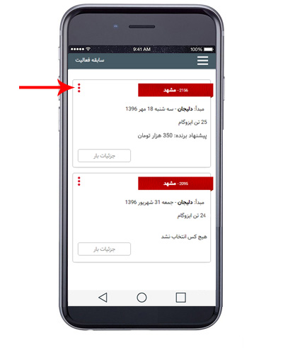 به اطلاع سفارش دهندگان محترم می رساند که در بخش سفارشهای موجود و همچنین در بخش سابقه سفارشها، با مراجعه به منوی باز شونده در کنار هر اعلام بار، می توانید از گزینه های حذف و همچنین تکرار مناقصه استفاده نمایید.