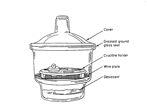 بوته یا ظرف حاوی نمونه روی صفحه ی سوراخداری در دسیکاتور قرار می گیرند. پس از قرارگیری ظرف حاوی نمونه، درپوش ظرف را می گذارند. کناره های درپوش سمباده خورده هستند. معمولا این کناره هارا روغن کاری می کنند تا پس از قرارگیری درپوش آن، هوایی از دسیکاتور نشت نکند و رطوبت وارد آن نشود.
