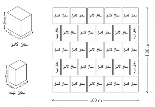 نحوه به دست آوردن تعداد سفال 15 سانتی متری در هر متر مربع در یک دیوار به ضخامت حدودا 15 سانتی متر.
