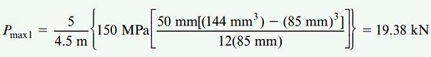 به دلیل عبور این نسبت از مقدار ½، تنش موجود در نقطه B در مقایسه با تنش موجود در نقطه C بیشتر خواهد بود. با جایگذاری σa به جای σB و PL/5 به جای M، رابطه مورد نیاز برای محاسبه Pmax به دست می آید: