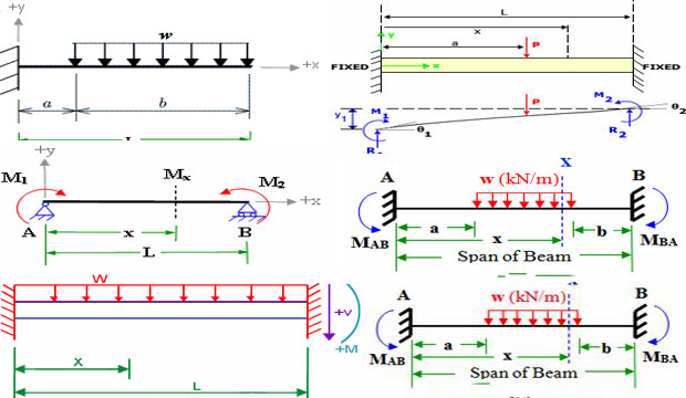 علامت M نیز بر اساس قواعد علامت گذاری گشتاور خمشی به دست می آید (گشتاور خمشی مثبت باعث ایجاد فشار در بخش بالایی تیر و کشش در بخش پایینی آن می شود).