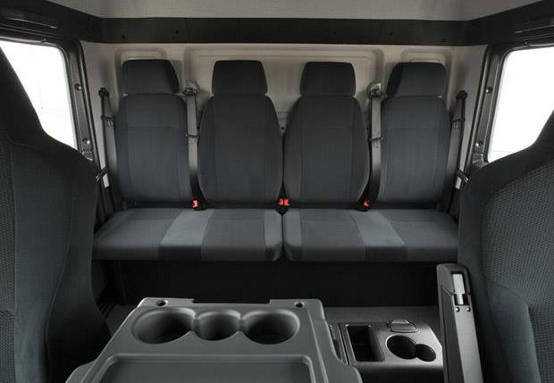 کابین چهار درب هم بسیار خاص و منحصر به فرد است و سرنشینان روی صندلی های ردیف دوم بسیار راحت خواهند بود. در ردیف دوم چهار صندلی قرار دارد و در مجموع هفت سرنشین (به همراه راننده) درون کابین جامیگیرند. همه صندلی ها به صورت استاندارد مجهز به کمربند ایمنی مجهز به پیش کشنده سه مرحله ای هستند. محفظه های بار زیادی نیز درون کابین به چشم می خورد.