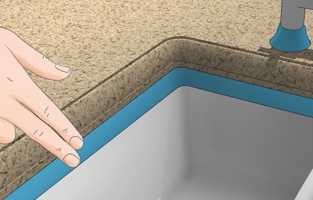 در این مرحله با استفاده از نوار چسب، لبه های دیوار و کابینت ها را برای جلوگیری از رنگی شدن بپوشانید. این امکان وجود دارد که نسبت به پوشاندن سینک ظرفشویی و دیوارپوش بین کابینتی نیز اقدام نمایید.
